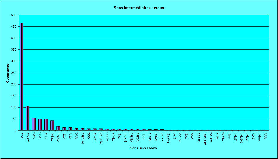 Les fréquences des associations [CC] et [VV] viennent très loin derrière: 10 % environ.