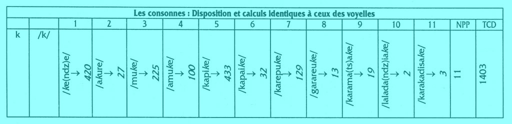 Si on traduit ce tableau par un graphe, on s’aperçoit sans surprise que les consonnes ont une position favorite d’ordre impair. Ce graphe vient en complément de celui des voyelles.
